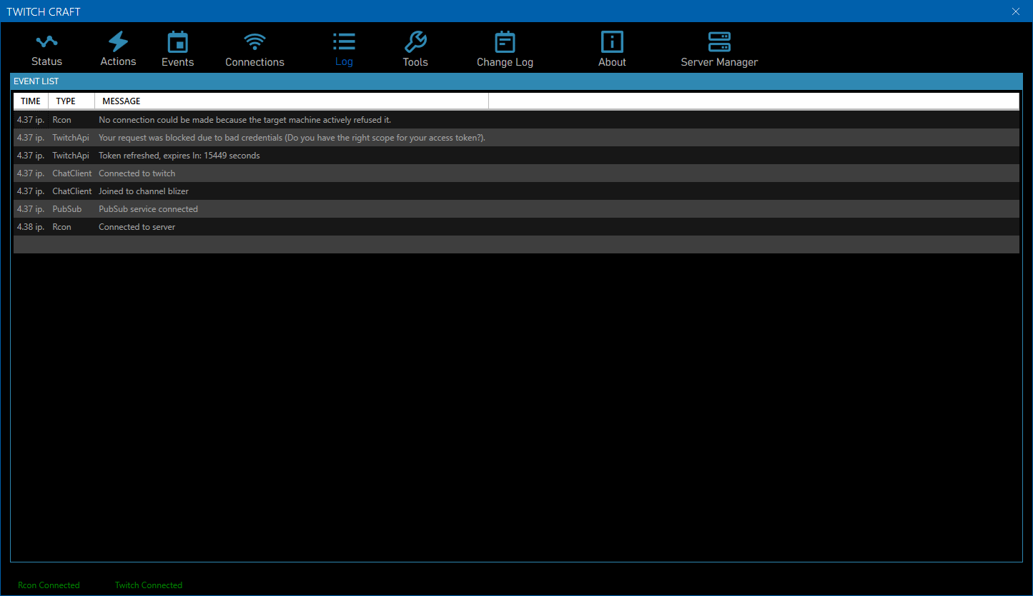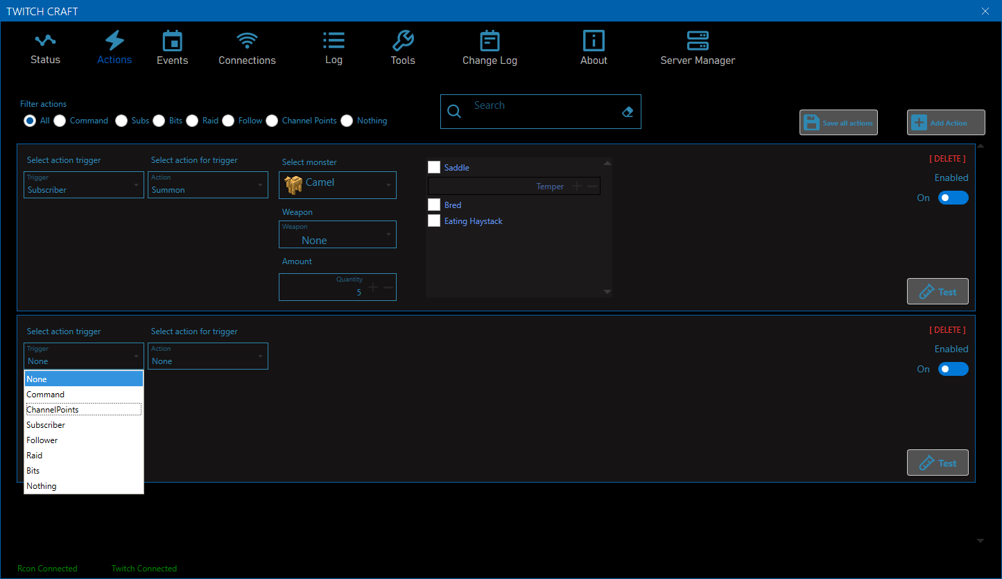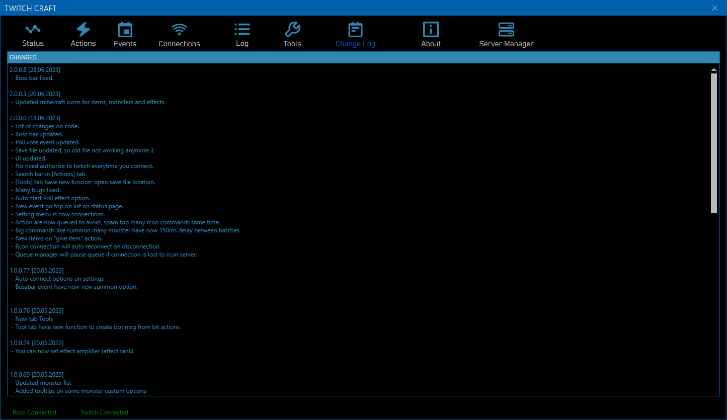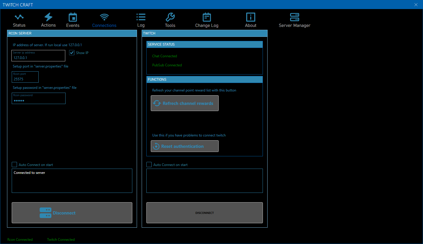 This program send rcon commands to minecraft client. This program let twtich streamer make action and events. These events trigger by subscripton, follow, raids, bits and channel points. Possible events are summon monsters, insta kill streamer, delete inventory, give effect, set experience, teleport... and many more.