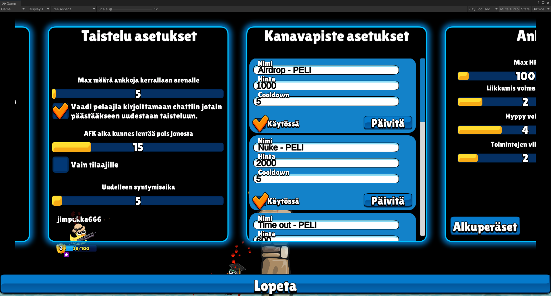 Viewers can join on battle by writing somehing on chat. Ducks keeps shooting eachother till they die. Game keep leaderboard for kills. Viewers can also use channelpoints spawn different things like nuke, supply creates, timeout other ducks, turn water to lava and many other actions.